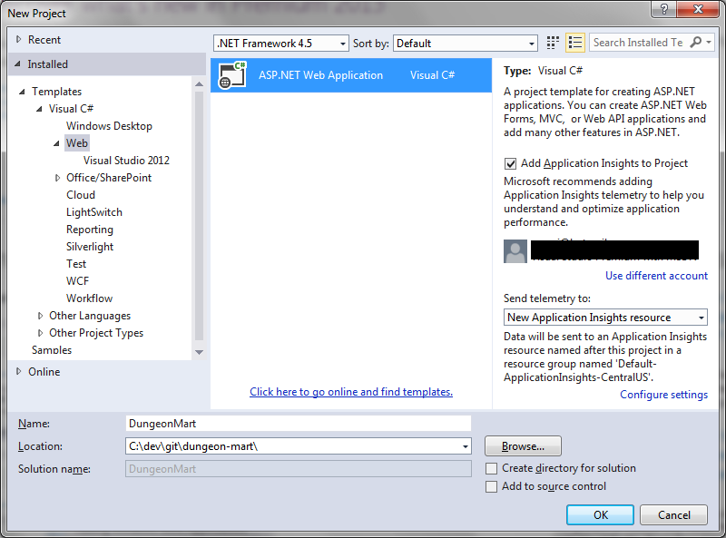 You might have your favorite way of creating projects, and I’d love to hear about them. Give me ideas in the comments. But for right now, this is how I normally go about a web site. The DungeonMart website it going to use Web API 2 for data services, AngularJS for UI, and Azure’s DocumentDB for the database (for now, at least).